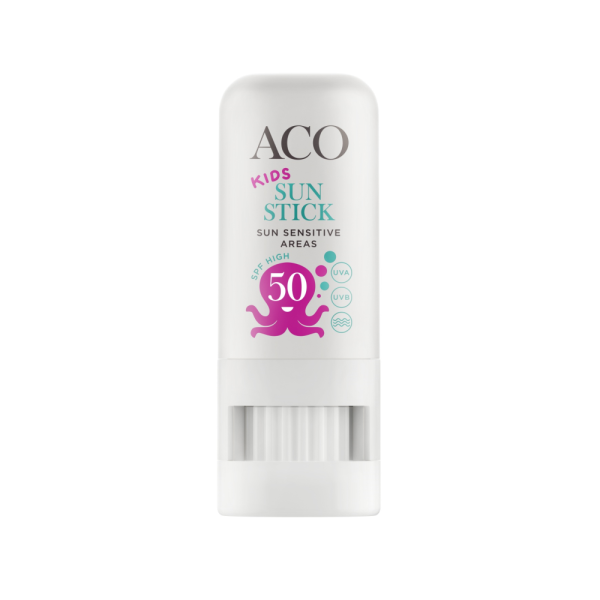 Pehmentävä aurinkopuikko lapsille kätevässä pakkauksessa, helppo ottaa mukaan ja käyttää! ACO Sun Kids Sun Stick SPF50 suojaa tehokkaasti auringolle alttiina olevia alueita, kuten nenänpäätä, korvanlehtiä ja huulia. Puikon canola-öljy pehmentää ja rauhoittaa ihoa ja E-vitamiini toimii antioksidanttina. Suojakerroin 50 (korkea suoja). Erittäin vedenkestävä. Hajusteeton, alkoholiton, väriaineeton ja säilöntäaineeton.
