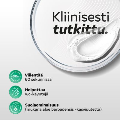 Annostele hoidettavalle alueelle runsaasti geeliä ulostamisen jälkeen vähintään kahdesti vuorokaudessa kahden viikon ajan tai tarpeen mukaan.
