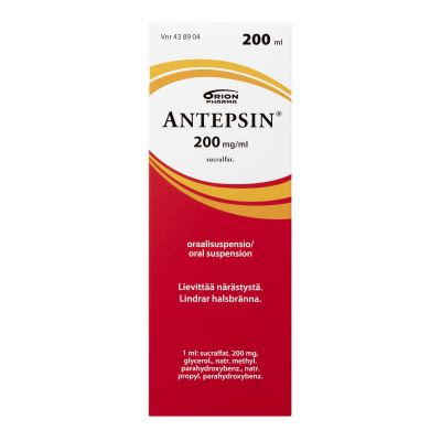 Antepsin-valmisteen vaikuttava aine sukralfaatti muodostaa mahalaukun seinämän pinnalle kalvon, joka peittää haavauman tai ärtyneen alueen ja suojaa sitä mahahapolta. Lääkettä käytetään ylävatsavaivojen ja refluksitaudin oireiden kuten närästys, rintalastan alla tai ylävatsalla tuntuva kipu ja polttelu, hoitoon. Pitkäaikaiseen, yli 8 viikon käyttöön vain lääkärin määräyksestä. Ei suositella alle 14-vuotiaille lapsille.