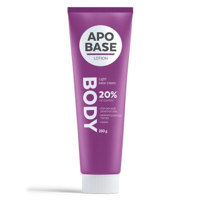 Apobase Lotion on helposti imeytyvä, kosteuttava ja kosteuden sälilyttävä perusvoide koko kehon päivittäisee hoitoon. Kaikille ihotyypeille sopiva perusvoide on jajusteeton ja lisäaineeton voide sopii koko perheelle. Myös meikin alla käytettävä tuote toimii myös kuivan ihon pesuaineena sekä kuivan, hilseilevän hiuspohjan hoidossa.