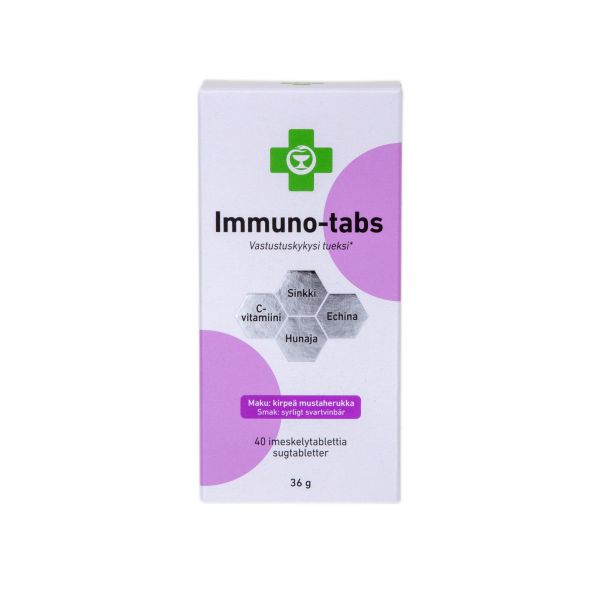 Sisältää sinkkiä, C-vitaminia, Echinaa ja hunajaa. Imeskelytabletti. Maku: kirpeä mustaherukka. *Sinkki ja C-vitamiini edistävät immuunijärjestelmän normaalia toimintaa.