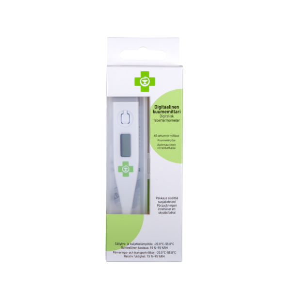 Digitaalinen kuumemittari ruumiinlämmön mittaukseen kainalosta, suusta tai peräaukosta.