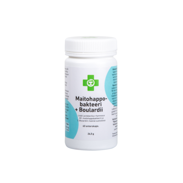 Monipuolinen maitohappobakteerin ja hiivan yhdistelmävalmiste. Yhdessä kapselissa on 2,5 mrd. Lactobacillus rhamnosus GG maitohappobakteeria ja 250 mg S. boulardii -hiivaa.