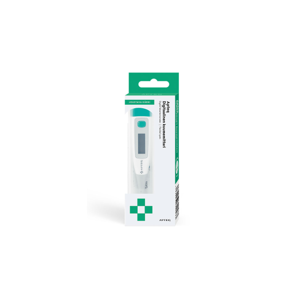 Apteq joustava digitaalinen kuumemittari on luotettava valinta perheen yleiskuumemittariksi. Mittarissa on joustava kärki ja se on vesitiivis.