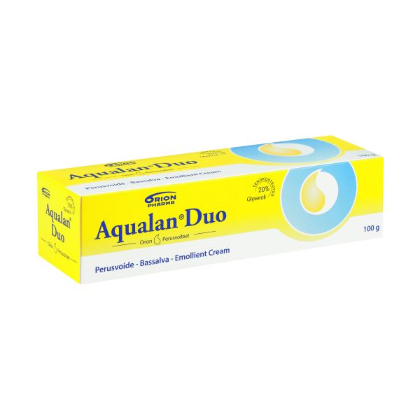 Tehokkaasti kostettava perusvoide Aqualan Duo sopii kuivalle ja kuivan tuntuiselle iholle. Kosteuttavaa ominaisuutta vahvistaa suuri glyserolimäärä. Hajustamaton tuote ei allergisoi.