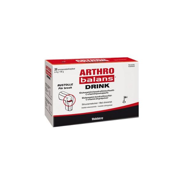 Arthrobalans Drink -juomajauheessa on vahva yhdistelmä glukosamiinia ja kondroitiinisulfaattia sekä C-vitamiinia nivelten hyvinvoinnin ylläpitoon. Sitruunanmakuinen jauhe on kätevä vaihtoehto tablettimuotoisille glukosamiinivalmisteille.