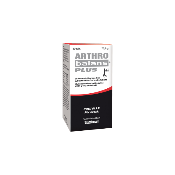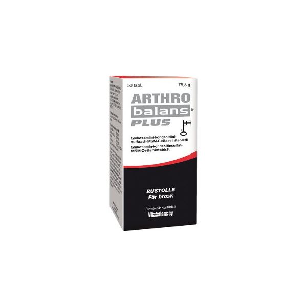 Arthrobalans Plus -tablettien koostumus on suunniteltu tukemaan nivelruston toimintaa ja nivelten hyvinvointia. Valmiste sisältää tarkkoina pitoisuuksina neljää turvallista aktiiviainetta: glukosamiinia, kondroitiinisulfaattia, MSM-rikkiyhdistettä sekä C-vitamiinia.