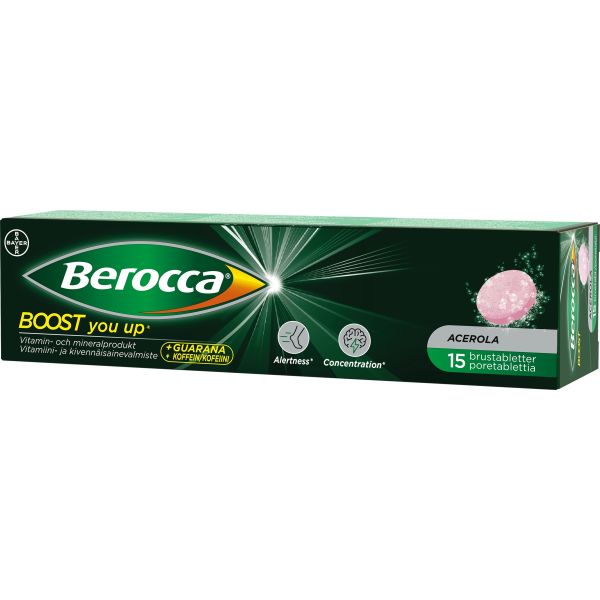 Berocca Boost on vitamiini- ja kivennäisainevalmiste, joka sisältää keskittymiskykyä tehostavaa ja piristävää kofeiinia sekä guaranaa.