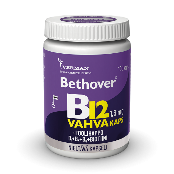 Vahva ja monipuolinen B12-vitamiinivalmiste varmistamaan maksimaalisen tuen muistille ja jaksamiselle. Tuote sisältää yhdessä pienikokoisessa kapselissa monipuolisen valikoiman B-vitamiineja, erityisesti B12-vitamiinia ja foolihappoa. Tuotteen sisältämät B1-, B6-, B12-vitamiinit sekä biotiini edistävät hermoston normaalia toimintaa. B3-, B12-vitamiinit sekä foolihappo auttavat vähentämään väsymystä ja uupumusta. Gluteeniton, laktoositon, maidoton ja liivatteeton. Kasviperäinen kapseli. Sopii vegaaniseen ruokavalioon.