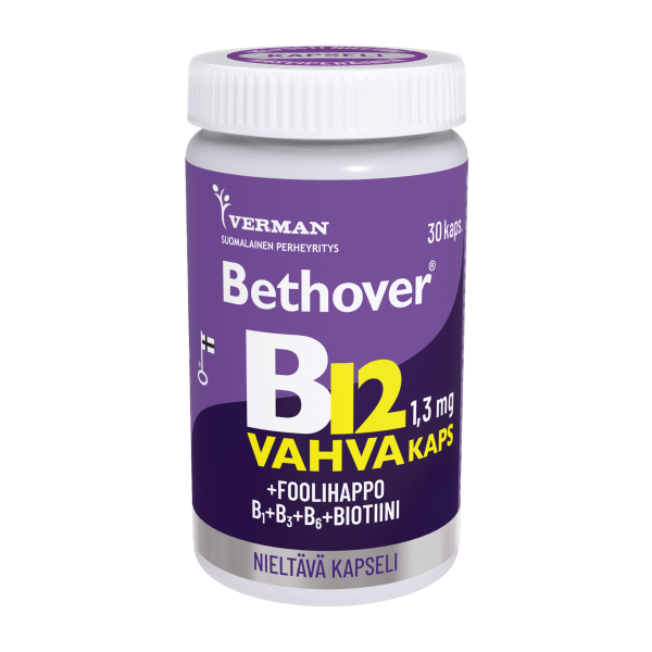 Vahva ja monipuolinen B12-vitamiinivalmiste varmistamaan maksimaalisen tuen muistille ja jaksamiselle. Tuote sisältää yhdessä pienikokoisessa kapselissa monipuolisen valikoiman B-vitamiineja, erityisesti B12-vitamiinia ja foolihappoa. Tuotteen sisältämät B1-, B6-, B12-vitamiinit sekä biotiini edistävät hermoston normaalia toimintaa. B3-, B12-vitamiinit sekä foolihappo auttavat vähentämään väsymystä ja uupumusta. Gluteeniton, laktoositon, maidoton ja liivatteeton. Kasviperäinen kapseli. Sopii vegaaniseen ruokavalioon.