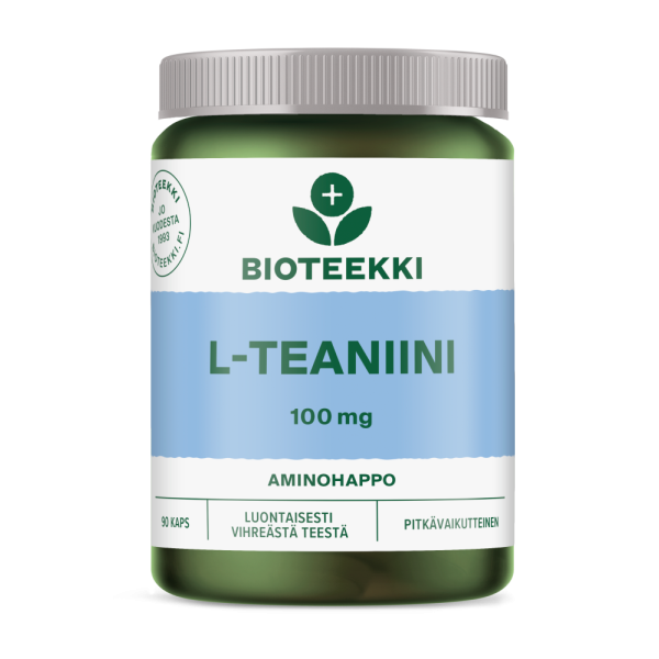 Kotimainen ja pitkävaikutteinen Bioteekki L-Teaniini on aminohappo ravintolisä. L-teaniinia löytyy luontaisesti vihreästä teestä ja sopii käytettäväksi ennen kuin haluat rentoutua. Helposti nieltävä tabletti. Soveltuu myös vegaaneille. Laktoositon. Gluteeniton. Väriaineeton.