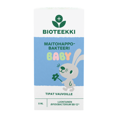 Bioteekki Maitohappobakteeri Baby (entinen BalanticPro Baby) on Suomessa valmistettu maitohappobakteeritippa vastasyntyneille ja vauvaikäisäisille. Bioteekki Maitohappobakteeri Babyn sisältämä Bifidobacterium BB-12® on vauvalle luontainen ja kliinisesti tutkittu maitohappobakteeri. Tipat sisältävät 1 miljardi elävää Bifidobacterium BB-12® -bakteeria / 6 tippaa, ja sopivat päivittäiseen käyttöön tai kuurina vastasyntyneille ja vanhemmille. Annostus kuusi tippaa päivässä, riittoisa 8 ml pakkaus sisältää vähintään 21 päiväannosta. Bioteekki Maitohappobakteeri Baby -tipat säilyvät huoneenlämmössä, avattuna 4 viikkoa. Ravistettava ennen käyttöä. Tuote on gluteeniton, liivatteeton ja soijaton. Tuote saattaa sisältää jäämiä maidosta.