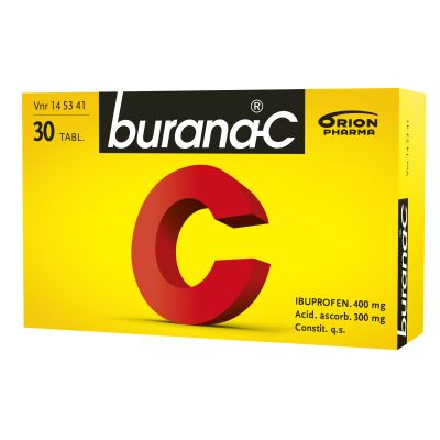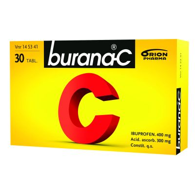 Burana-C 400 mg lievittää virusten aiheuttaman nuhakuumeen ja influenssan oireita. Tablettien sisältämä ibuprofeeni on ns. tulehduskipulääke. Se estää kivuntunteen välittymistä keskushermostoon vähentämällä tulehdusta ja kipua voimistavien välittäjäaineiden muodostumista. Se myös alentaa kuumetta vähentämällä kuumetta nostattavien välittäjäaineiden muodostumista. C-vitamiini osallistuu elimistön entsyymireaktioihin ja toimii antioksidanttina.