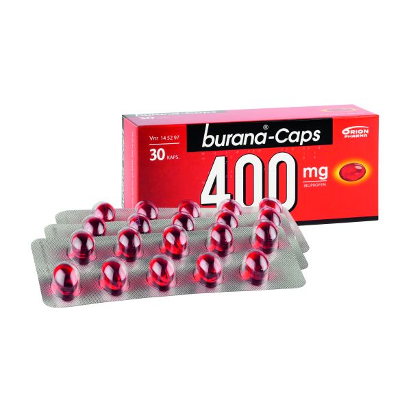 Burana-Caps lievittää tilapäisiä kipuja ja kuumetiloja nopeasti. Lääkeaine on valmiiksi liuotettuna nesteeseen ja siksi se imeytyy ja vaikuttaa nopeasti. Burana-Caps -kapselien sisältämä ibuprofeeni on ns. tulehduskipulääke. Se estää kivuntunteen välittymistä keskushermostoon vähentämällä tulehdusta ja kipua voimistavien välittäjäaineiden muodostumista. Se myös alentaa kuumetta vähentämällä kuumetta nostattavien välittäjäaineiden muodostumista.