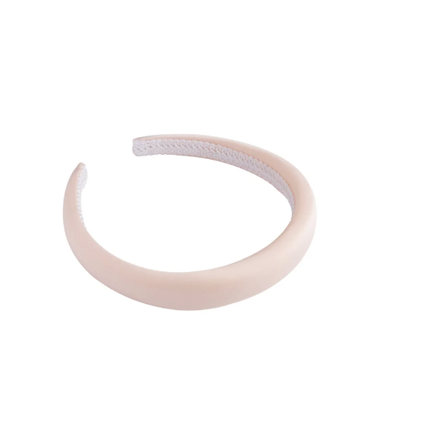 Kapea ja muhkea satiininen hiuspanta ihanassa hempeän puuterisessa sävyssä.