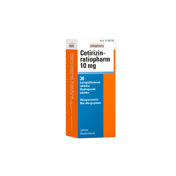 Cetirizin-ratiopharm 10 mg on allergialääke, joka on tarkoitettu kausiluonteiseen ja ympärivuotiseen allergiseen nuhaan liittyvien nenä- ja silmäoireiden sekä nokkosihottuman hoitoon. Sen vaikuttava aine setiritsiini on antihistamiini.