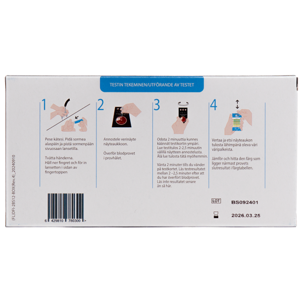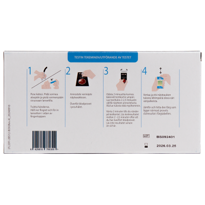 Testi tehdään sormenpään veripisarasta.