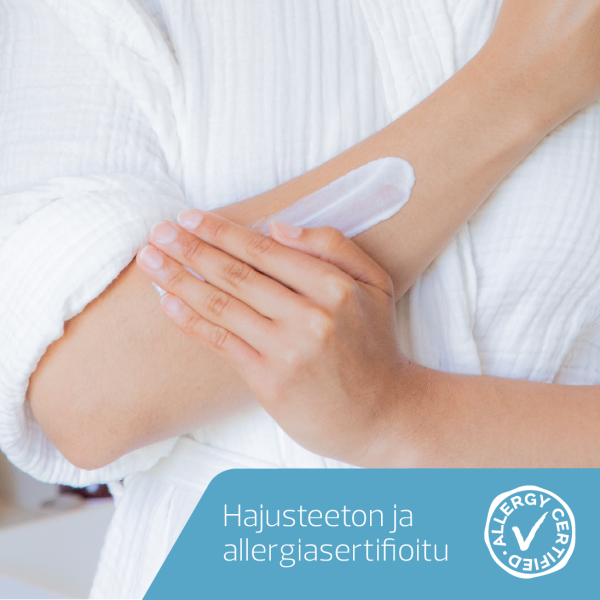 Levitä niin usein kuin on tarpeen koko vartalolle pitääksesi kuivan ja herkän ihon pehmeänä, joustavana ja kosteutettuna.
