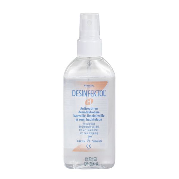 Desinfektol H on antiseptinen etanolipohjainen desinfektioaine, joka soveltuu mm. haavojen ja ihovammojen desinfiointiin. Lähes tuoksuton valmiste ei kirvele. Sisältää ksylitolia ja soveltuu myös suun huuhteluun.