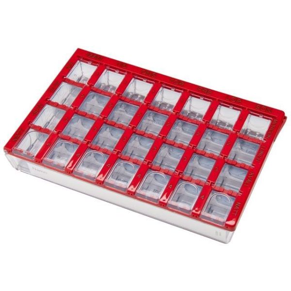 Viikkoannostelija lääkkeitten tilapäiseen säilytykseen ja helpottamaan lääkkeitten annostelua sekä lääkkeen ottamista oikeaan aikaan. Annostelija on jaettu seitsemään lokeroon, joihin on merkitty viikonpäivät. Nämä päivälokerot on vielä jaettu 4:ään kellonajoin merkittyyn osaan. Annostelijassa on mukana lapsilukko ja käyttöohjeet. Maxi on kooltaan suurempi kuin Medi-annostelija. Medin koko 155x102x25 mm ja Maxin koko 205x133x38 mm.