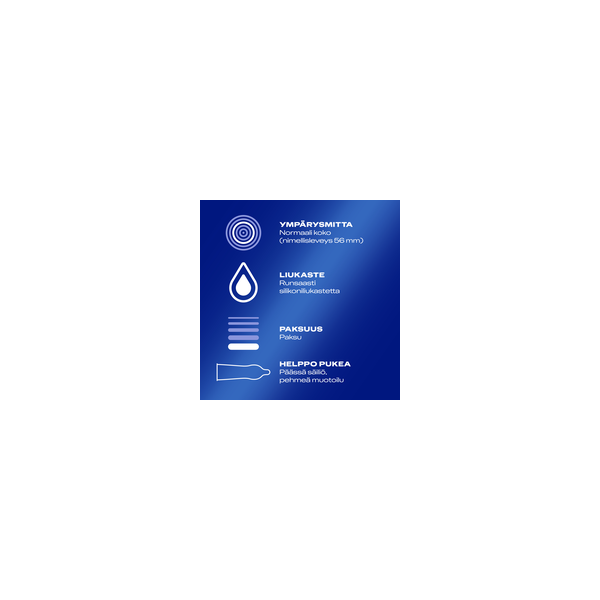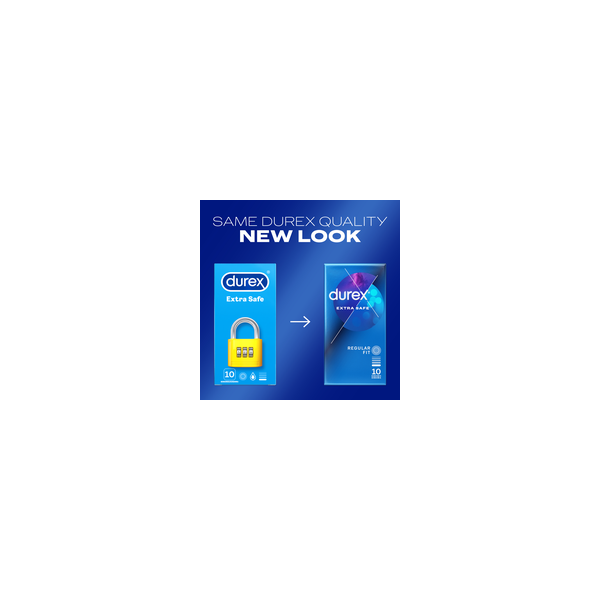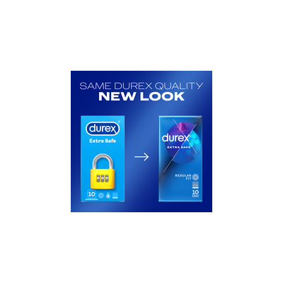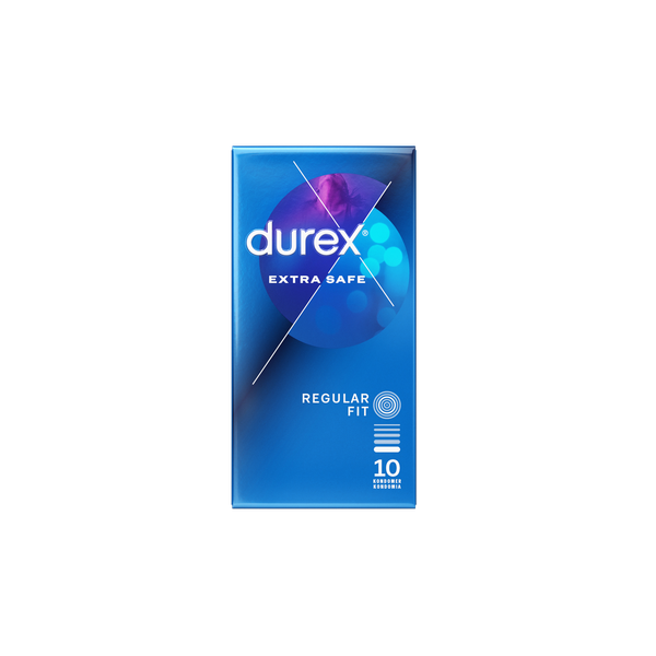 Durex Extra Safe kondomi on turvallinen, hieman paksumpi luonnonkumikondomi, joka antaa lisävarmuutta ehkäisyyn. Kondomi on runsaasti liukastettu, läpinäkyvä ja säiliöllä varustettu. Easy-On -muotoilun ansiosta helppo asettaa paikoilleen.