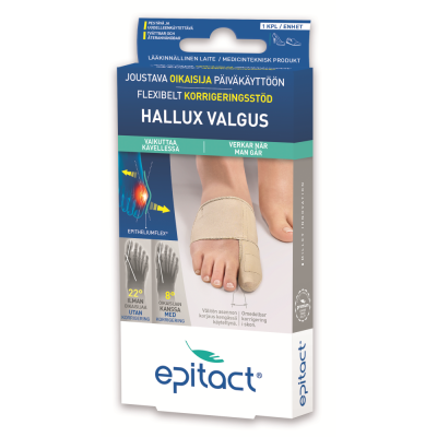 Korjaa asentopoikkeamaa ja rajoittaa vaivaisenluun etenemistä sekä lievittää nivelkipua.