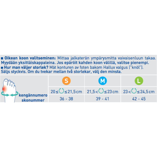 - Varmista ensin, että isovarvas liikkuu yhä sivusuunnassa käsin liikuteltuna. Jos varvas ei liiku, älä käytä tuotetta.