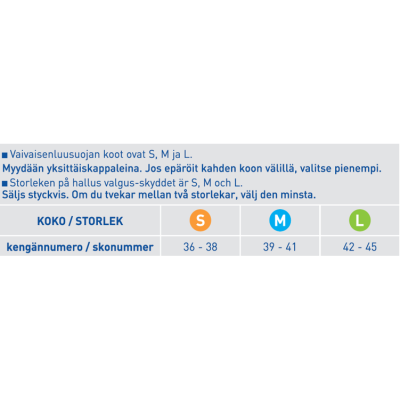 - Jos sinulla on valtimotulehdus, diabetes, polyneuriitti, alaraajojen neuropatia tai haavaumia, kysy neuvoa lääkäriltä tai jalkaterapeutilta ja tarkkaile jalkaa suojan käytön aikana.