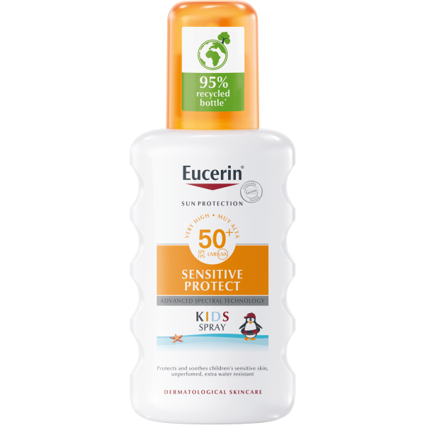Eucerin Sensitive Protect Kids Sun Spray SPF50+ -tuotteen on kliinisissä ja dermatologisissa tutkimuksissa todettu sopivan lasten herkälle, myös atooppiselle iholle. Se sopii kolme kuukautta täyttäneille ja tätä vanhemmille lapsille.