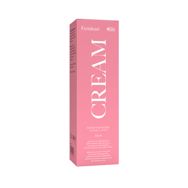 Femisan Cream on kosteuttava voide intiimialueen kuivuuden oireiden, kuten kutinan ja kirvelyn, lievittämiseen. Voide on hormoniton ja edistää luonnollisen pH-arvon säilymistä. Sopii kaiken ikäisille naisille.