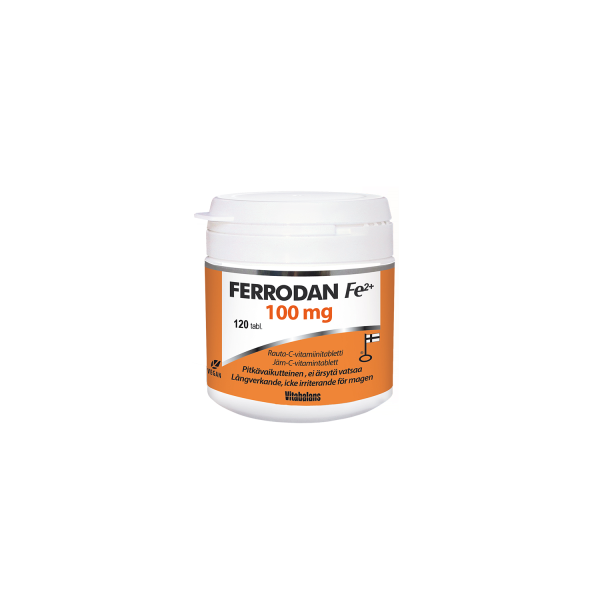 Ferrodan Fe2+ 100 mg on vahva rautavalmiste, joka tarkoitettu lisäämään raudan saantia. Tabletissa yhdistyvät kasviperäinen rauta ja C-vitamiini, joka parantaa raudan imeytymistä. Valmisteen rauta on hyvin imeytyvää rauta(II)bisglysinaattia, joka on paremmin siedetty kuin muut rautayhdisteet. Tabletti on pitkävaikutteinen ja vapauttaa rautaa suolistossa useamman tunnin ajan.