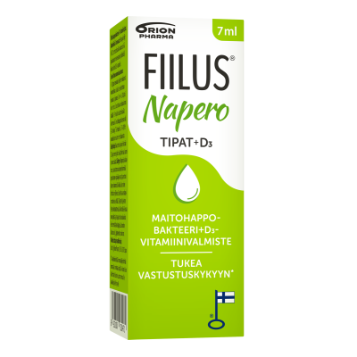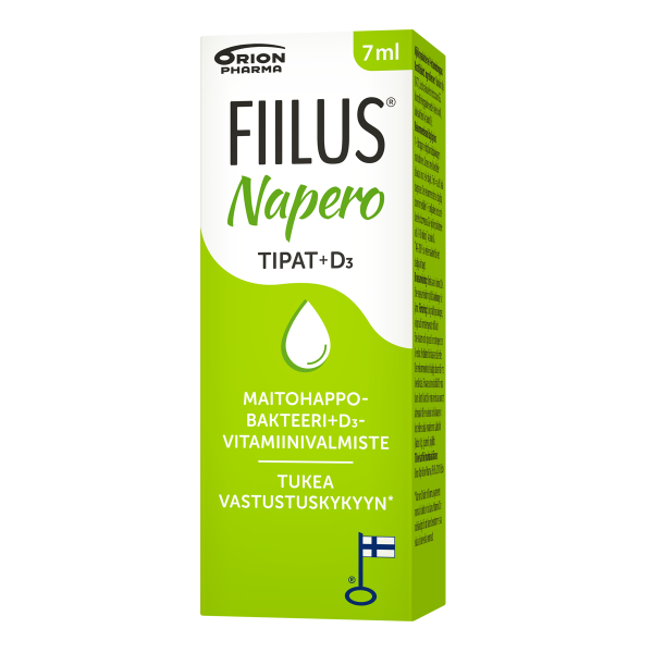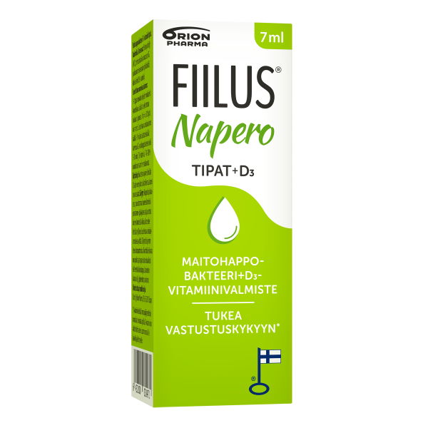 Fiilus Napero + D3 tipat ovat suunniteltu erityisesti lapsille. Valmiste annostellaan kätevästi tippoina, jolloin se on neutraalin makunsa ansiosta helppo tarjota lapselle esimerkiksi mehuun, äidinmaitoon tai ruokaan sekoitettuna. Täysin laktoosittomana, gluteenittomana ja maidottomana valmiste sopii myös maitoallergikoille ja keliaakikoille.