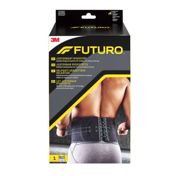 Futuron säädettävä selkätuki on hengittävää ja pehmeää materiaalia, joka on voidaan pestä käsin. Alaselän kompressiotuet ja pehmusteet ovat siirrettävissä. Tuki on helppo pukea ja riisua.Voidaan käyttää tukena selkäleikkauksen jälkeen.