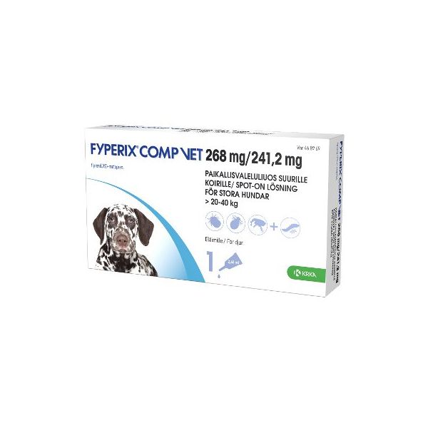 FYPERIX COMP VET paikallisvaleluliuos 268 mg/241,2 mg koiralle yli 20 kg-40 kg 2,68 ml