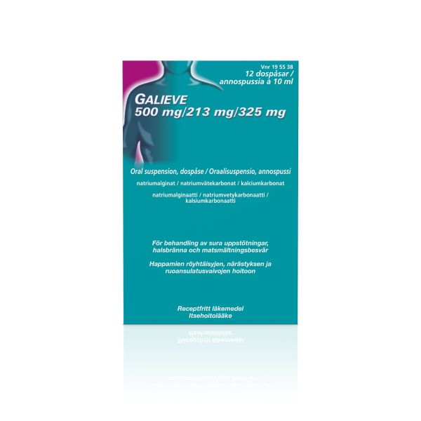 Galievea käytetään ruokatorven refluksitautiin liittyvien happo-oireiden hoitoon, joita ovat mm. happaman mahansisällön nousu ruokatorveen ja suuhun, närästys ja ruoansulatusvaivat. Galieve sisältää kalsiumkarbonaattia, natriumvetykarbonaattia ja alginaattia vaikuttavina aineina. Alle 12-vuotiaille lapsille ja pitkäaikaiseen käyttöön vain lääkärin ohjeen mukaan.