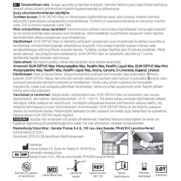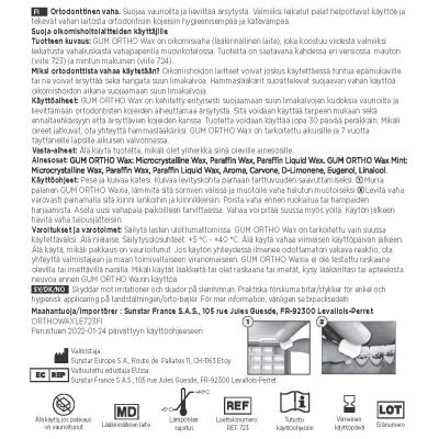 GUM ORTHO Wax on tarkoitettu vain suussa käytettäväksi. Älä nielaise.