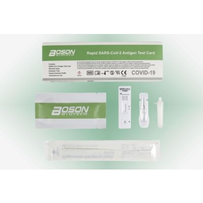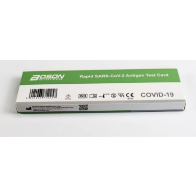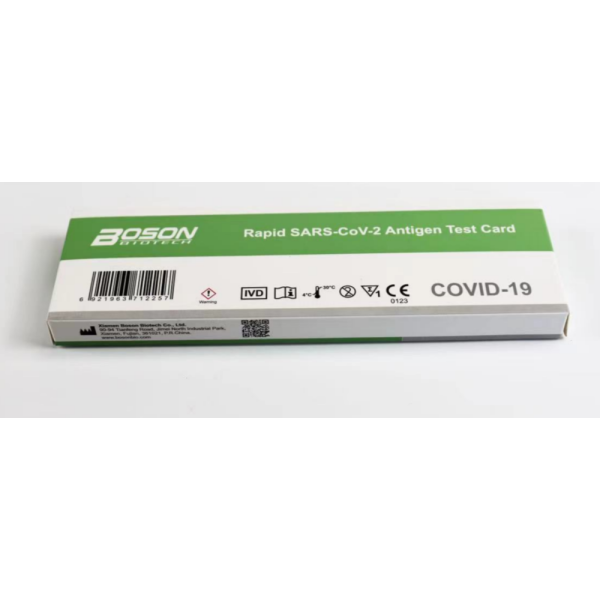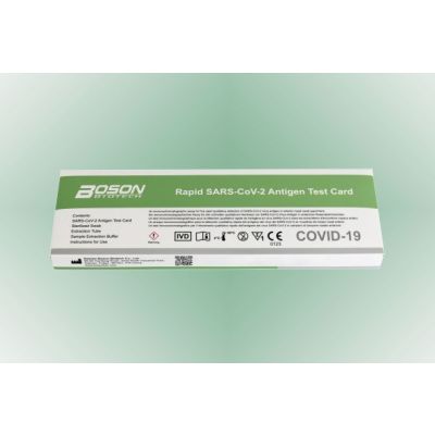 RAPID SARS-COV-2 ANTIGEN TEST CARD (Boson) on nopea ja luotettava antigeenitesti SARS-Co-V-2 viruksen havaitsemiseen.