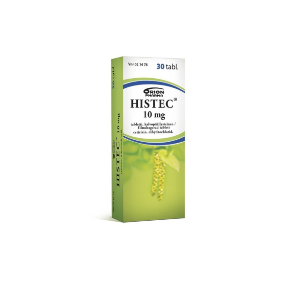 Histecin vaikuttava aine on setiritsiinihydrokloridi. Histec on allergialääke ja se on tarkoitettu aikuisten ja vähintään 6-vuotiaiden lasten kausiluonteiseen ja ympärivuotiseen allergiseen nuhaan liittyvien nenä- ja silmäoireiden hoitoon sekä pitkäaikaisen nokkosihottuman (kroonisen idiopaattisen urtikarian) hoitoon. Alle 6-vuotiaille tai pitkäaikaiseen käyttöön vain lääkärin määräyksestä.