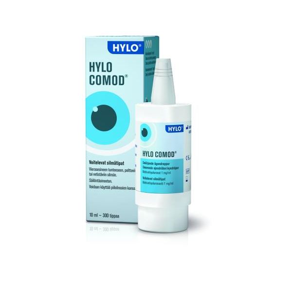 Voitelevat ja kosteuttavat silmätipat kroonisesti kuiville ja väsyneille silmille. HYLO-Comod silmätipat 10 ml kosteuttavat tehokkaasti ja pitkäkestoisesti kuivia, kirveleviä, vuotavia ja väsyneitä silmiä. Tuote sisältää korkealaatuista hyaluronihappoa, joka voitelee ja kosteuttaa intensiivisesti silmiä. Kosteuttavat silmätipat sopivat käytettäväksi myös silmäkirurgisten toimenpiteiden jälkeen. Erinomainen tuote keskivaikeisiin silmäoireisiin ja pitkäaikaiseen käyttöön.
