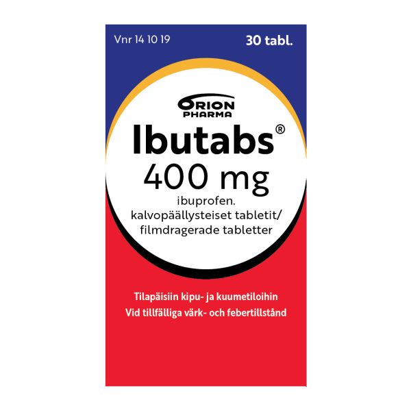 Ibutabs 400 mg tabletti tilapäisiin kuume-ja kiputiloihin aikuisille ja yli 20 kg painaville lapsille. Vaikuttava aine ibuprofeeni. Pitkäaikaiseen käyttöön vain lääkärin määräyksestä. Pakkauskoot 10 ja 30 tabl.