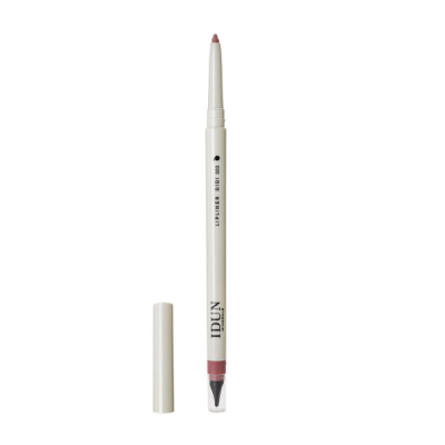 Rajaa ja muotoile huulet täydellisesti muotoiltujen linjojen saamiseksi. IDUN Minerals Lipliner sisältää ainutlaatuisen tasapainoisen sekoituksen pehmentäviä aineita, vahoja ja erittäin puhdistettuja mineraalipigmenttejä, jotka antavat vegaaniselle koostumukselle kermaisen koostumuksen ja sileän silkkisen sekä täyteläisen mattavärisen lopputuloksen. Rikastettu hoitavalla jojobaöljyllä, joka pitää huulet pehmeinä ja kosteutettuina käytön aikana. Kaksipäisessä rakenteessa on sisäänrakennettu teroitin. Kynä ja korkki on valmistettu samasta vaaleanvärisestä, kevyestä monomateriaalista, joten se on helppo kierrättää.