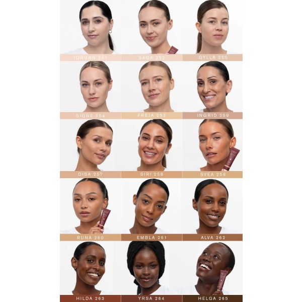 Vaalean ihon meikkivoide kaikille ihotyypeille, myös herkälle iholle. IDUN Minerals Hydra Soft Mineral Foundation 30 ml Signe sopii vaalealle iholle ja siinä on neutraali pohjasävy. IDUN Minerals Signe on keskipeittävä meikkivoide, joka kosteuttaa ja sulautuu ihoon silkinpehmeällä koostumuksellaan. Sopii mainiosti juhlatilaisuuksiin sekä päivittäiseen käyttöön arjessa, sillä nestemäistä meikkivoidetta voidaan kerrostaa sen mukaan, kuinka peittävää lopputulosta tavoitellaan. Se sisältää luonnollisia mineraaleja ja ihoa helliviä ainesosia yhdistäen meikin ja ihonhoidon ominaisuudet. Lisäksi meikkivoide on ympäristöystävällinen valinta, sillä 70% tuubista on valmistettu kierrätysmuovista ja ulkopakkaus on FSC-sertifioitua paperia. Vegaaninen. Dermatologisesti testattu.