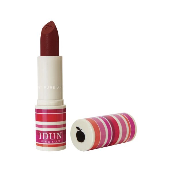 IDUN Minerals -huulipuna hoitaa huulia ja antaa niille pysyvän, intensiivisen värin. Näyttää huulilla samettisen himmeältä.