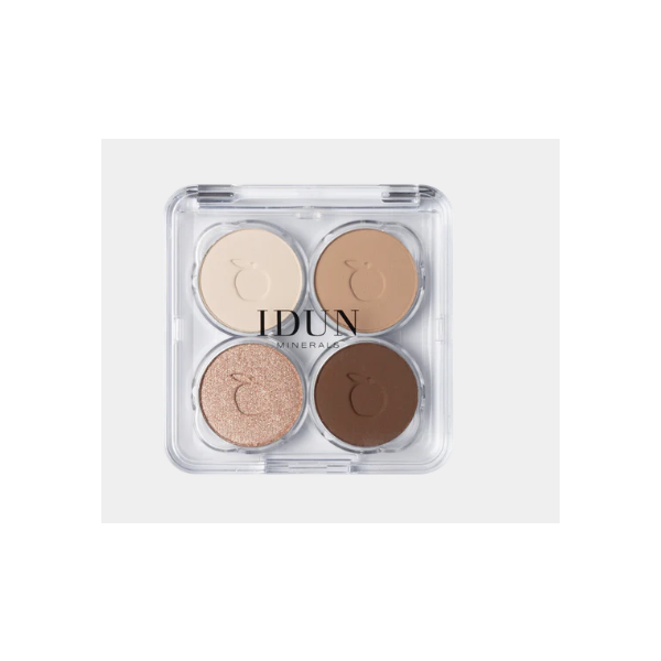 IDUN Minerals Mineral Eyeshadow Palette sisältää silkkisen pehmeän, painottoman koostumuksen, joka sulautuu ihoon ja korostaa silmiä puhdistetuilla mineraalipigmenteillä. Neljä monipuolista sävyä ovat runsaspigmenttisiä, helppoja häivyttää ja antavat sinulle vapauden luoda kaikkea arkipäiväisestä aina näyttäviin silmämeikkeihin.
