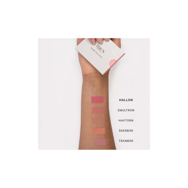 IDUN Minerals -poskipuna on yhdeksässä eri sävyssä, ja sen väripigmentti on saanut inspiraationsa pohjoismaisten marjojen kauniista väreistä. Erittäin puhdistetuilla mineraaleilla rikastettu poskipuna antaa intensiivisen värin sekä luonnollisen ja raikkaan ilmeen.