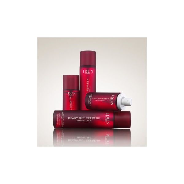 READY SET REFRESH. Monikäyttöinen ultrakevyt kasvosuihke, joka pohjustaa ihon, kiinnittää meikin ja kosteuttaa ihoa tuoden hehkuvan lopputuloksen. IDUN Minerals Ready Set Refresh Setting Spray -kasvosuihkeen kevyt koostumus parantaa meikin kestoa samalla kosteuttaen ja virkistäen ihoa. Sisältää glyserolia, joka lukitsee kosteuden ihoon sekä niasiiniamidia (3 %), joka vahvistaa ihon luonnollista suojakerrosta, lisää elastisuutta sekä parantaa ihon ulkonäköä. Tämä monikäyttöinen tuote pitää ihosi tasapainossa. Suihketta voi käyttää kosteuttavana meikinpohjustajana, eri meikkivaiheiden välissä sekä ihoa tasoittavana meikinkiinnityssuihkeena vähentämään puuterin aiheuttamaa kuivuutta ja kiinnittämään meikin tehokkaasti. Kätevä 50 ml pakkaus on helppo ottaa mukaan, joten miksi et hankkisi useamman suihkeen - yhden kylpyhuoneeseen, yhden laukkuun ja yhden töihin, jotta ihosi pysyy kosteutettuna ja ihanan tuntuisena koko päivän.