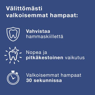 Valkoisemmat hampaat välittömästi ja pikäkestoisesti.