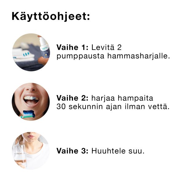 3. Harjaa hampaita ilman vettä kevyin pyörivin liikkein noin 30 sekunnin ajan.
