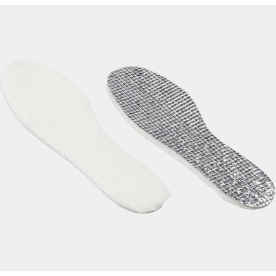 Erityisen lämpimät ja pehmeät villapohjalliset. Pohjan alumiinieriste estää maasta tulevan kylmän pääsyn jalkaan ja päällisen pehmeä villa tuo lämpöä.Pohjallisia voi tuulettaa käytön jälkeen.Kokoa voi leikata sopivammaksi.