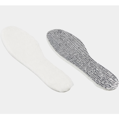 Erityisen lämpimät ja pehmeät villapohjalliset. Pohjan alumiinieriste estää maasta tulevan kylmän pääsyn jalkaan ja päällisen pehmeä villa tuo lämpöä.Pohjallisia voi tuulettaa käytön jälkeen.Kokoa voi leikata sopivammaksi.